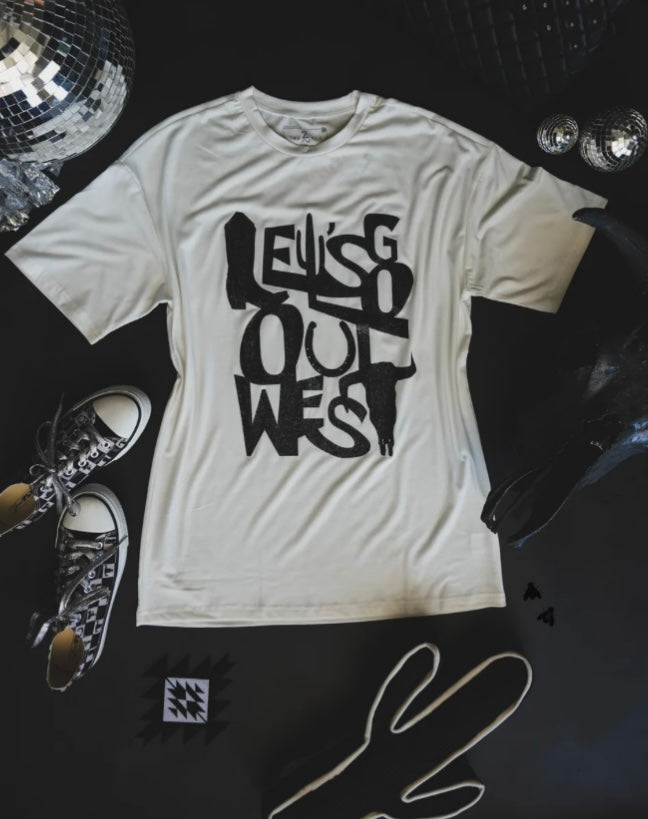 "let's go out west" with your iconic western emblems
